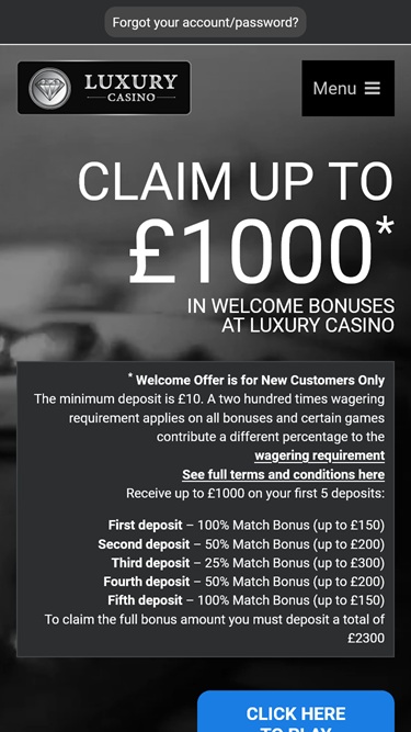 下記はLuxury Casinoで利用可能な5つのボーナスです。