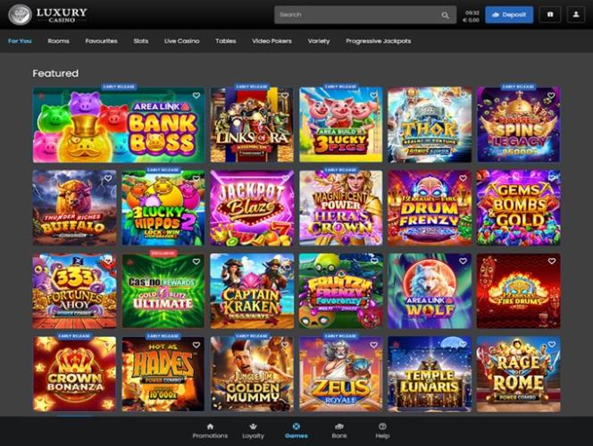 Luxury Casinoは、 Microgaming, Evolution Gaming, Pragmatic Play, Triple Edge Studios, Northern Lights Gaming, Stormcraft Studios, Switch Studios, All41 Studios, Gameburger Studios, Pulse 8 Studios, Neon Valley Studios, SpinPlay Games, Real Dealer Studios, GONG Gaming, On Air Entertainment, Buck Stakes Entertainment, Games Global, Old Skool Studios, Foxium, Just For The Win, PearFiction Studios, Wild Streak Gaming, Slingshot Studios, Fortune Factory Studios, Crazy Tooth Studio, Alchemy Gaming, Snowborn Games, Gold Coin Studios, Half Pixel Studios, Eurostar Studios, Aurum Signature Studios, Area Vegas, Wishbone Games, Circular Arrow, HammerTime Games, Nailed It! Games, Neko Games, Reel Kingdom and Oros Gamingを搭載しており、それらを介してパンターは何百ものゲームがプレイ出来ます。同カジノはウェブベースのプラットフォームをプレイヤーに与えており、もしプレイヤーがそれらを自身のパソコンでプレイしたい場合には、それを許可するオプションを持っています。