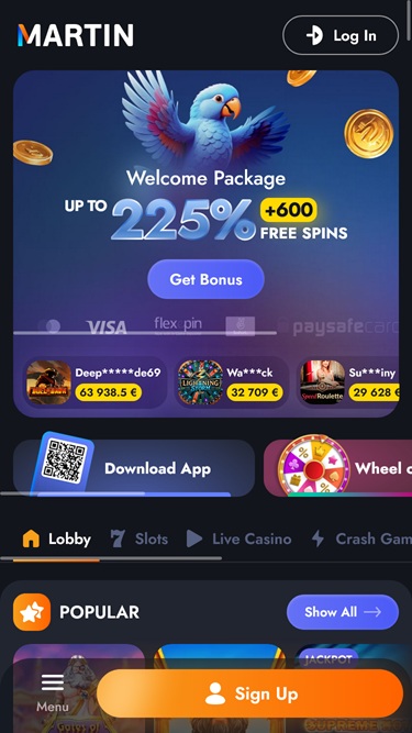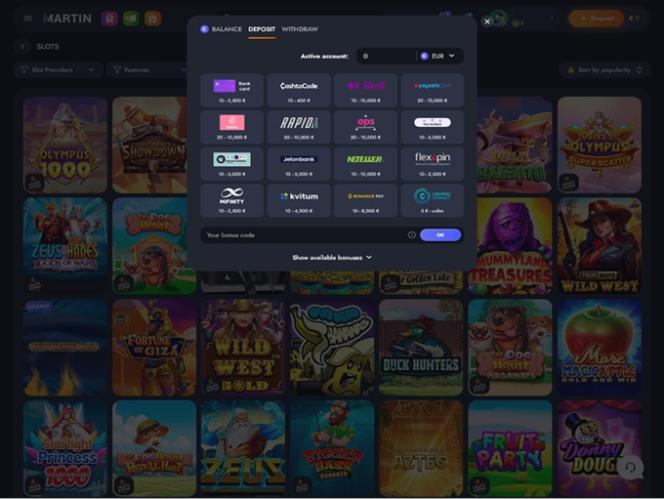 Martin Casinoは、リアルマネースロット、ライブディーラー、テーブルゲーム、クラッシュゲーム、スポーツベッティングなど、豊富なゲームをプレイヤーに提供することに注力している大規模なオンラインギャンブルサイトです。ドイツ、オーストリア、スイス、フィンランドのプレイヤーを受け入れており、膨大なゲームカタログとボーナス付きの魅力的なプロモーションプランをお楽しみいただけます。