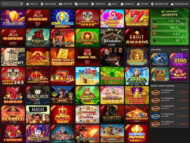ジャックポット セクションでは、100 Burning Hot、Egypt Sky、Flaming Hot、20 Super Hot、Oil Company II、100 Cats、Extra Stars、Blue Heart、Secrets of Alchemy、20 Diamonds、Frog Story、More Dice & Roll、100 Super Hot、40 Burning Hot、Book of Magic、Extremely Hot、Rise of RA、Supreme Hot、Olympus Glory、20 Dazzling Hot、2 Dragons、5 Juggle Fruits、20 Hot Blast、Great 27、27 Wins、5 Great Star、20 Burning Hot などを提供しています。