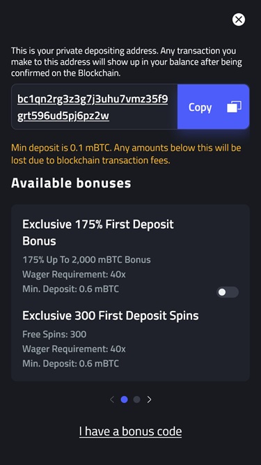 mBit Casino は顧客に対して何らかの無料プログラムを提供していないようです。