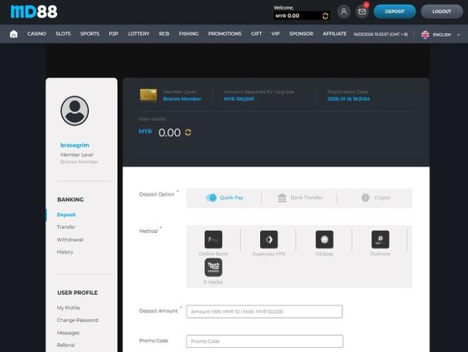 MD88カジノには「責任あるギャンブル」というテキストが掲載されているにもかかわらず、このテーマに特化したページは用意されていないようです。ライセンスや規制を受けていないため、プレイヤーにガイドライン、サードパーティへのリンク、安全対策ツールなどを提供する義務はありません。