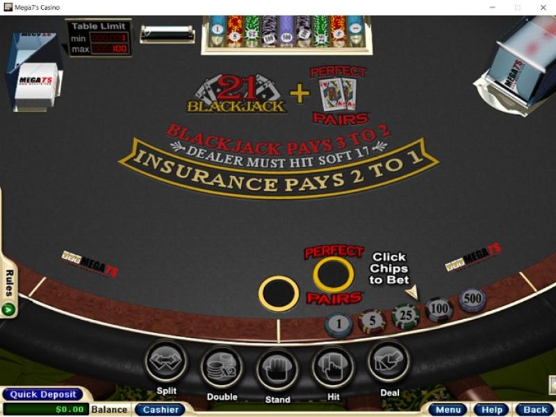 についての詳細情報 Mega7's Casino's Blackjack with Perfect Pairs
