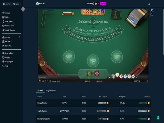 カジノウェブサイトは、どなたにも使いやすい効果的なデザインを採用しています。最新のテクノロジーツールを駆使し、あらゆるiGamingトレンドに対応し、現代のプレイヤーのニーズを満たしています。すべてが非常に整理されており、カジノインターフェースはユーザーフレンドリーで、ギャンブラーはカジノのゲームライブラリをスムーズに閲覧できます。Megadice Casinoでは、Aviator、Plinko、Need For X、Quantum Xといった魅力的な暗号ゲームをはじめ、一流のエンターテイメントを数多く提供しています。