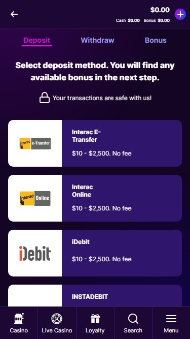 - 出金するには、少なくとも1回の入金を行い、プレイに使用する必要があります。カジノは、賭け金に充当されていない資金の出金に対して手数料を請求する権利を有します。