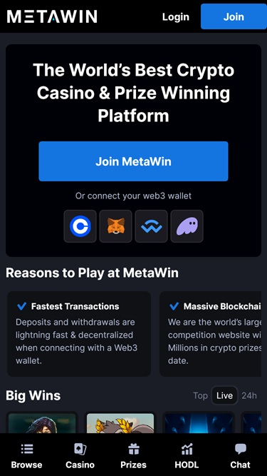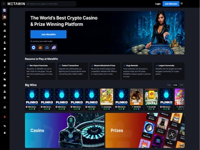 2025年に設立されたMetawinは、世界中のプレイヤーを歓迎する仮想通貨に特化したオンラインカジノです。リアルマネースロット、ライブディーラー、テーブルゲーム、インスタントクラッシュゲームなど、豊富なカジノゲームのラインナップに加え、豊富なプロモーション、ボーナス、イベント、景品もご用意しています。