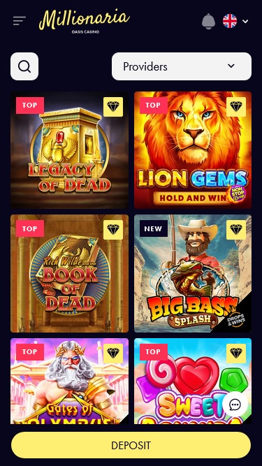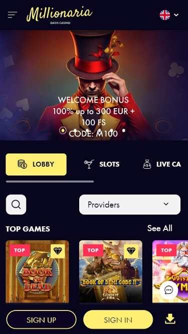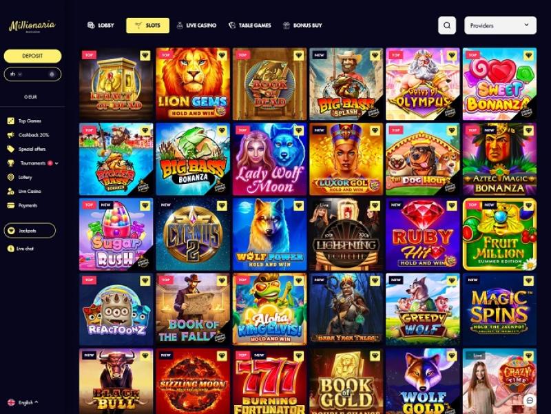 Milionariaには、様々なテーマのトップクラスのゲームが満載の、充実したスロットゲームコレクションがあります。人気タイトルは、Robby The Illusionist、Day And Night、Book Of Truth、100 Juicy Fruits、1 Reel Xmas、Fruit Million、Book Of Truth、Startup Valley、4 Horsemen II、Sunstrike、Circus Fruits、Victoria Wild、Astro Pandas、Victoria Wild Deluxe、Victoria Wild Deluxe、African Fortune、Arabian Spins、Victoria Wild Deluxe、Asia Wins、Aztec Palace、Baby Bloomers、Bachelorette Party、Bang Bang、Barnyard Twister、Big Apple Wins、Booming Bananas、Book Of Tombs、Booming Bars、Booming Gold、Booming Seven Deluxe、Boomshakalaka、Buffalo Hold and Winなどです。