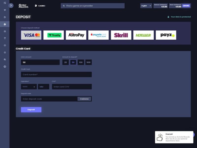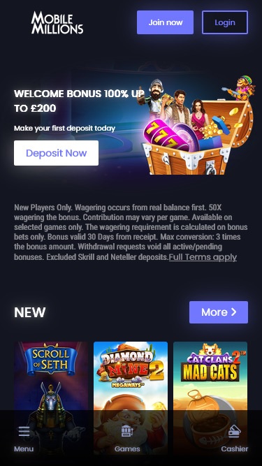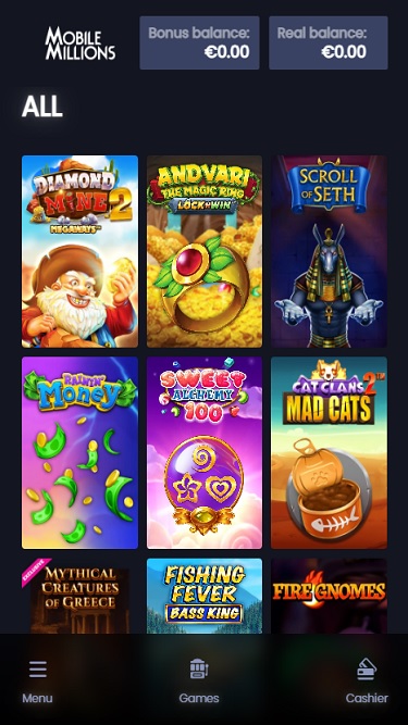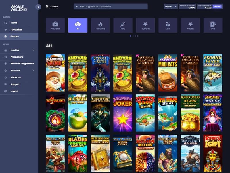 Mobile Millions Casino は Microgaming, Net Entertainment, Big Time Gaming, ELK Studios, Evolution Gaming, EYECON, Genesis Gaming, lightningboxgames, Play'n GO, playson, Quickspin, Rabcat, Thunderkick, Vivo Gaming, Wazdan, BetConstruct, LuckyStreak, Skillzzgaming, Fantasma Games, Triple Edge Studios, Stormcraft Studios, Switch Studios, All41 Studios, TVBet, Gameburger Studios, Pulse 8 Studios, Super Spade Games, Games Global, 2by2 Gaming, Blueprint Gaming, Games Warehouse, NextGen, Tom Horn Gaming, WMS, Inspired Gaming, Genii, SG Interactive, Red7Mobile, CORE Gaming, Iron Dog Studio, Foxium, Betdigital, Just For The Win, PearFiction Studios, Slingshot Studios, Fortune Factory Studios, Gamevy, Crazy Tooth Studio and Alchemy Gamingによって提供されており、そのゲームはデスクトップとモバイルの両方の画面に適合する Web ベースのインスタント プレイ プラットフォームを通じて提供されます。Blackjack