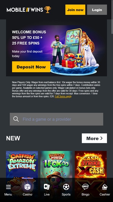 MobileWins Casinoは、2014年にProgressPlayによって設立されたオンラインベッティングサイトです。規制対象の管轄区域のプレイヤーにゲームとサービスを提供しています。膨大なゲームライブラリ、洗練されたウェブサイト、そして勝利金の出金までの時間など、MobileWins Casinoは一見の価値があります。カジノ情報