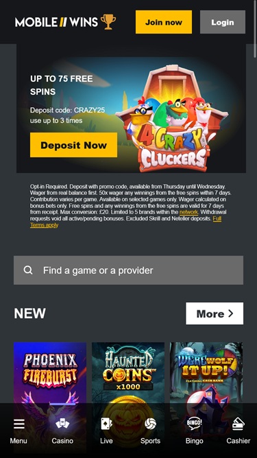 MobileWinsカジノは Microgaming, Net Entertainment, Playtech, 1x2gaming, Barcrest, Big Time Gaming, ELK Studios, Evolution Gaming, EYECON, lightningboxgames, Play'n GO, Rabcat, Thunderkick, Wazdan, Pragmatic Play, Nolimit City, Red Tiger Gaming, Spinomenal, Skillzzgaming, Fugaso, SYNOT Games, Skywind, Triple Edge Studios, Northern Lights Gaming, Stormcraft Studios, Switch Studios, All41 Studios, Gluck Games, Gameburger Studios, Pulse 8 Studios, Slot Factory, Neon Valley Studios, Shuffle Master, SpinPlay Games, Real Dealer Studios, GONG Gaming, Buck Stakes Entertainment, Games Global, 2by2 Gaming, Blueprint Gaming, NextGen, Tom Horn Gaming, WMS, Inspired Gaming, SG Interactive, Red7Mobile, CORE Gaming, Scientific Games, Reel Time Gaming, Iron Dog Studio, Old Skool Studios, Foxium, Betdigital, Just For The Win, PearFiction Studios, Wild Streak Gaming, Slingshot Studios, Fortune Factory Studios, Gamevy, Crazy Tooth Studio, ReelPlay, Alchemy Gaming, Black Pudding Games, Snowborn Games, Hacksaw Gaming, Gold Coin Studios, Half Pixel Studios, Eurostar Studios, Aurum Signature Studios, Lucksome Gaming, Leap Gaming, Wishbone Games, Circular Arrow and HammerTime Gamesを採用しており、ゲームはウェブベースのインスタントプレイプラットフォームを通じて提供されています。また、スマートフォンやタブレットでプレイできるモバイルサイトも提供しています。Blackjack
