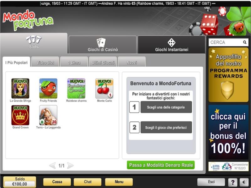 MondoFortuna Casinoは、2011年から運営されているオンラインベッティングサイトです。イタリアとマルタの両方で正式に認可されており、出金までの時間も正確で、幅広いゲームを取り揃え、ボーナス条件も概ね有利です。そのため、イタリアのプレイヤーにとって運試しに最適な場所です。カジノ情報