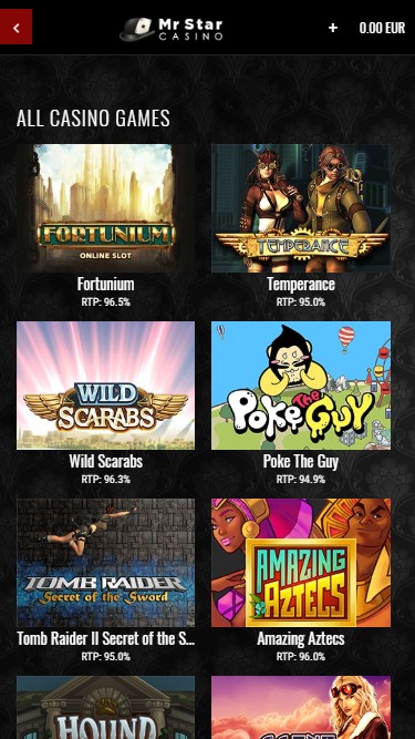 Mr Star Casinoは Microgaming, Net Entertainment, BetSoft, Evolution Gaming, Ezugi, Habanero Systems, GameArt, Pragmatic Play, Games Global, 2by2 Gaming, Mr Slotty, Join Games and Foxiumを採用しており、プレイヤーはカジノのウェブサイトからゲームにアクセスできます。スマートフォンやタブレットでプレイしたい方のために、モバイルカジノもご用意しています。
