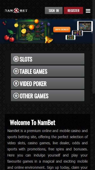 Nambet Casinoは、キュラソー島のPolo Gamingが所有・運営するオンラインベッティングサイトです。2016年に設立されたNambetは、ビンゴ、ポーカー、スポーツベッティング、カジノゲームなど、幅広いゲームを揃えています。しかし、ボーナスの賭け条件は通常よりも高く、出金には最大1週間かかる場合もあり、Nambetは悪くないオンラインベッティングサイトですが、優れたサイトとは言えません。カジノ情報