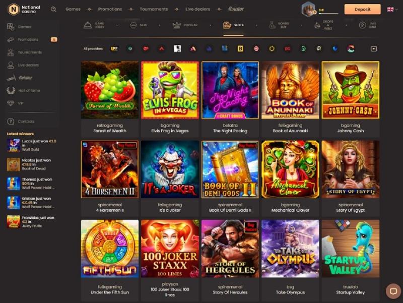 Endorphina、Belatra、 Evoplay Entertainment 、Push Gaming、EGT、ELK Studios、Realistic、Tom Horn Gaming、Yggdrasil は、National Casino と提携している数多くの企業の一部です。