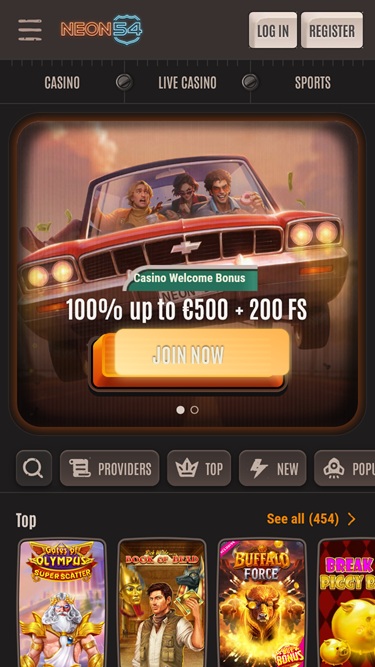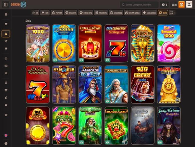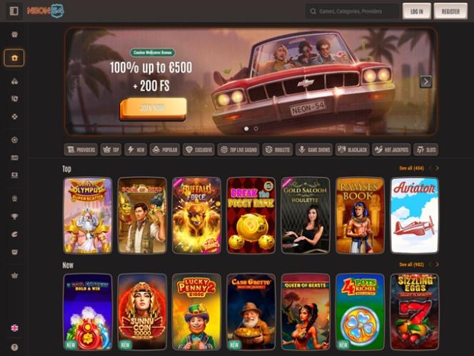 Neon54でプレイできるスロットタイトルの数は圧巻です。Book of Tribes、Fire Forge、Primal Hunt、Boompers、Johnatan Legendarian、Thunder of Olympus Hold and Win、Take the Bank、Gold Collector、Viking Runes、Panda Luck、Remastered Stunning Snow、Desperate Dawgs、Immortal Romance、Snowing Luck、Feel Lucky、Buffalo Blitz、Lucky Lady Moonなど、3000種類以上のスロットゲームからお選びいただけます。