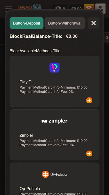 Neon54は、プレイヤーの皆様に最も人気があり安全な決済方法を提供しています。ただし、銀行取引は国によって異なるため、すべての決済方法がすべてのカジノ会員にご利用いただけるわけではないことにご注意ください。