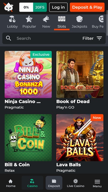 Ninja Casino のスロットマシンの品揃えは、最大規模ではないかもしれませんが、多様なプレイヤーの好みに合わせてカスタマイズされています。神秘的な文明を探索したり、深く潜って海中の宝物を探したり、人気のフルーツを使ったリールを回したり、このカジノのポートフォリオには、他にもたくさんの楽しみがあります。デモモードもご利用いただけます。