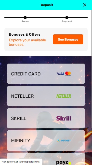 €9 (MiFinity)/€13 (Credit/Debit Cards)
