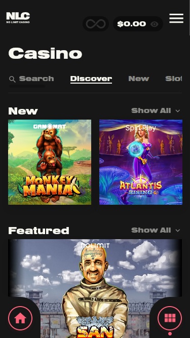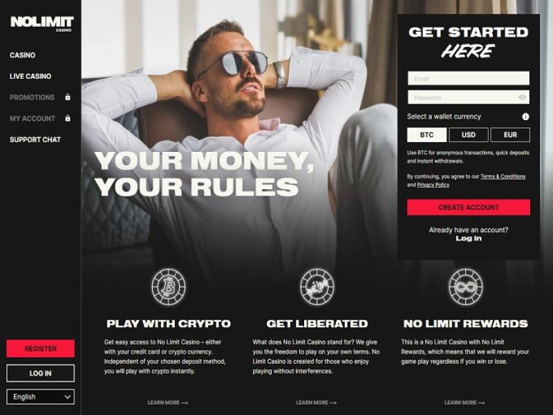 ミニマルでダークな雰囲気を漂わせる、多言語対応のNo Limit Casinoは、ホームページで「Your Money, Your Rules(あなたのお金、あなたのルール)」というキャッチフレーズを掲げ、その信条を掲げています。非常に直感的なメインナビゲーションメニューは、常に左側に配置されています。