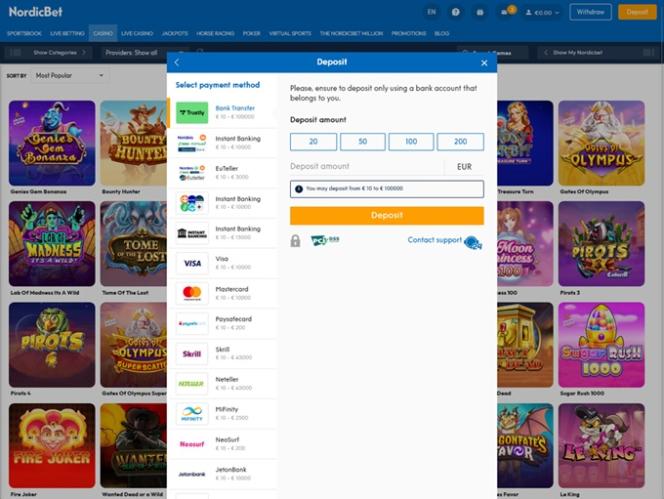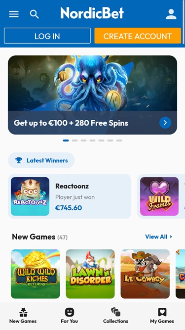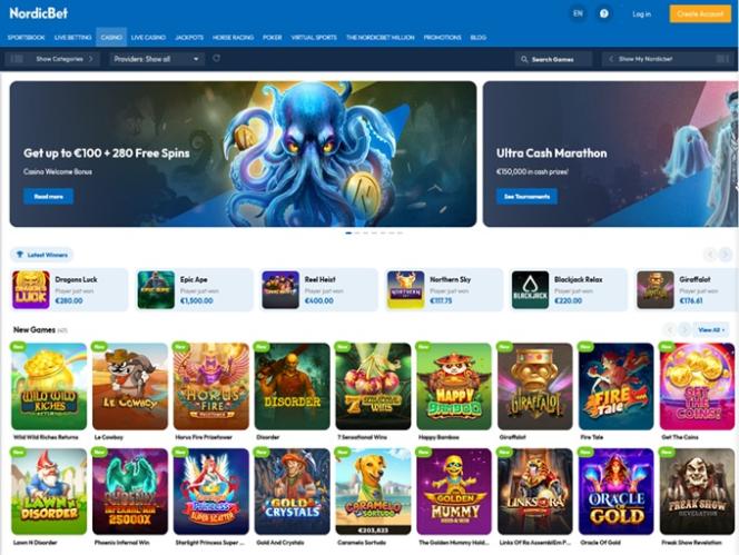NordicBet カジノは Microgaming, Net Entertainment, Playtech, BetSoft, 1x2gaming, Barcrest, Big Time Gaming, ELK Studios, Evolution Gaming, Genesis Gaming, Habanero Systems, iSoftBet, lightningboxgames, Novomatic, Oryx, Play'n GO, playson, Quickspin, Rabcat, Relax Gaming, Thunderkick, Yggdrasil, Endorphina, Wazdan, Realistic Games, GameArt, Betgames, Booming Games, Stakelogic, Pragmatic Play, Nolimit City, Felt Gaming, Red Tiger Gaming, IGT, Spinomenal, Red Rake Gaming, Skillzzgaming, Fantasma Games, SYNOT Games, FUGA Gaming, Kalamba, Sigma Gaming, Skywind, Triple Edge Studios, Northern Lights Gaming, Stormcraft Studios, Switch Studios, Electric Elephant Games, Pocket Games Soft, Bulletproof Games, All41 Studios, Gluck Games, Gameburger Studios, Pulse 8 Studios, Neon Valley Studios, Golden Rock Studios, Spearhead Studios, Swintt, Shuffle Master, SpinPlay Games, Real Dealer Studios, GONG Gaming, Blue Guru Games, Lady Luck Games, Buck Stakes Entertainment, Design Works Gaming, Games Global, Wizard Games, 2by2 Gaming, Ash Gaming, Bally Technologies, bluberi, Blueprint Gaming, Greentube, Leander Games, NextGen, NYX Interactive, Pariplay, Push Gaming, WMS, Inspired Gaming, SG Interactive, Gamomat, Red7Mobile, CORE Gaming, Scientific Games, RFranco Group, Side City Studios, MGA, Authentic Gaming, Bally Wulff, Iron Dog Studio, Old Skool Studios, Foxium, Betdigital, Just For The Win, Reflex Gaming, PearFiction Studios, Apollo Games, Wild Streak Gaming, Slingshot Studios, Fortune Factory Studios, RubyPlay, 4ThePlayer, AvatarUX, Gamevy, Crazy Tooth Studio, NetGaming, High 5 Games, ReelPlay, Japan Technicals Games, Alchemy Gaming, Rarestone Gaming, BB Games, Snowborn Games, Boomerang Studios, Hacksaw Gaming, Max Win Gaming, Gold Coin Studios, Bang Bang Games, Slotmill, SilverBack Gaming, Peter And Sons, Eurostar Studios, Aurum Signature Studios, Lucksome Gaming, Religa, Area Vegas, RAW iGaming, Leap Gaming, Betradar, Indigo Magic and Sneaky Slotsによって運営されており、そのゲームは Web ベースのプラットフォームだけでなく、スマートフォンやタブレットでもプレイできるモバイル サイトを通じても提供されています。