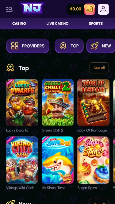 前述の通り、Novajackpotは最新のプラットフォームを備えており、コンテンツ全体が非常によく構成されています。利用可能なゲームはすべて、カジノ、ライブカジノ、ジャックポットの3つのセクションに分かれています。