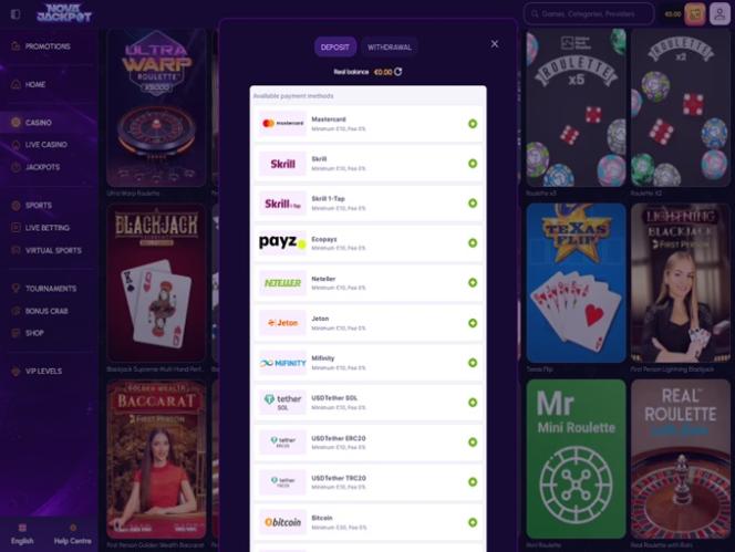 Novajackpotは、膨大なゲームコレクション、充実したプロモーションセクション、魅力的なロイヤルティプログラムを提供する、仮想通貨対応のギャンブルブランドです。また、カジノのキャッシャーでは、優れた銀行決済オプションもご利用いただけます。