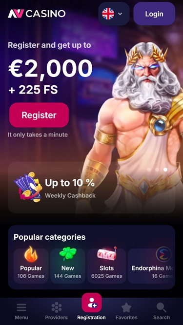 新規アカウントを登録するには、メールアドレスまたは電話番号を入力し、パスワードと希望通貨を選択するか、サインアッププロセスで利用可能な人気のソーシャルネットワークから登録するだけで完了です。2番目のステップでは、いくつかの基本的な情報を入力し、カジノの利用規約に同意する必要があります。すると、プレイヤーダッシュボードが表示されます。ここはすべて非常に分かりやすく、デスクトップコンピューターからNVカジノにアクセスする場合でも、外出先でモバイルデバイスからアクセスする場合でも、簡単に操作できるはずです。