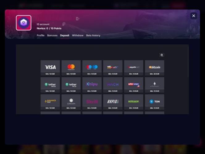 チェックできる利用可能なカテゴリの一部を以下に示します:スロット、ライブカジノ、インスタゲーム、ドロップ&ウィン、ルーレット、ブラックジャック、ポーカーなど。