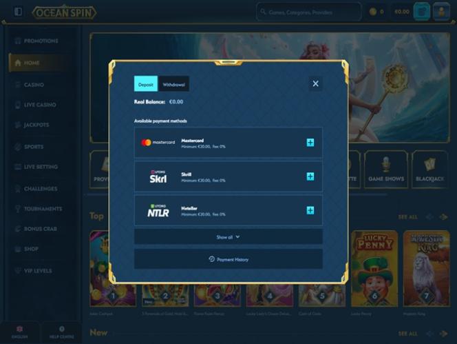 数千ものリアルマネースロット、ライブディーラー、テーブルゲーム、クラッシュゲームなど、膨大なゲームセレクションを誇るOcean Spin Casinoは、現代のカジノプレイヤーとスポーツベッターの両方に人気のスポットとなっています。同ブランドは、数々のボーナスやプロモーションを盛り込んだ魅力的なプロモーションプランを提供しており、プレイヤーは暗号通貨を含む複数の決済方法で資金を管理できます。