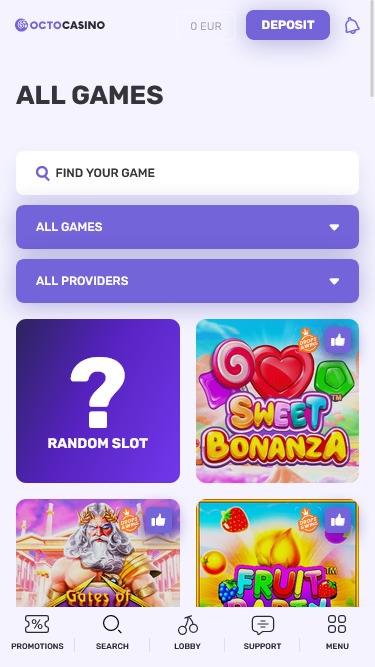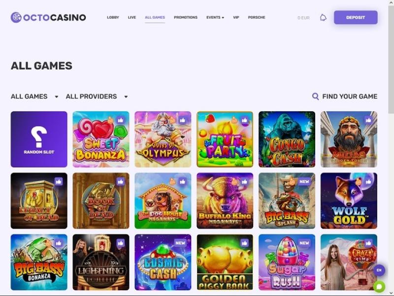 SoftSwiss、Evolution Gaming、BetSoft、Yggdrasilなど、多くの有名オンラインカジノソフトウェアプロバイダーがOctoCasinoと提携しています。OctoCasinoは高品質なエンターテイメントコンテンツを提供しており、幅広いカジノゲームを網羅しています。
