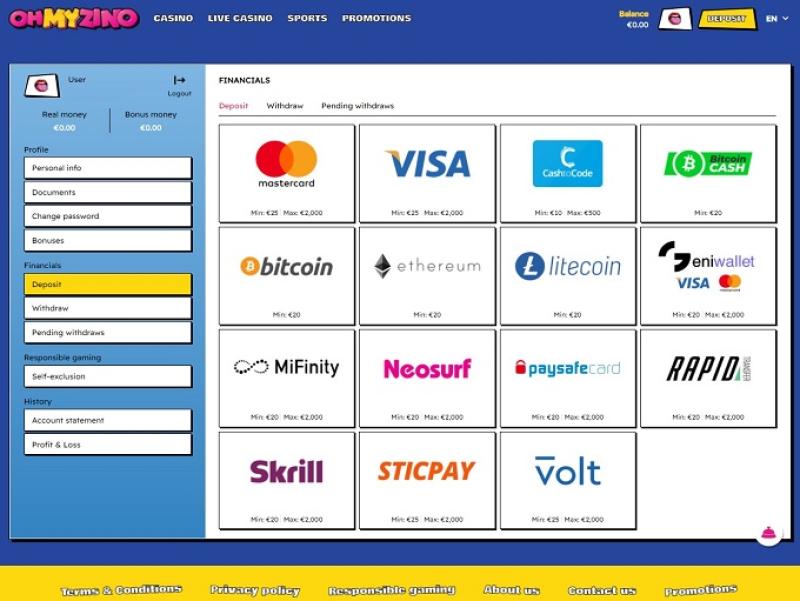 - 重複アカウントは許可されておらず、複数のアカウントがある場合、カジノはそのようなアカウントを閉鎖し、賞金を無効にし、すべての入金を OhMyZino に返金する権利を留保します。