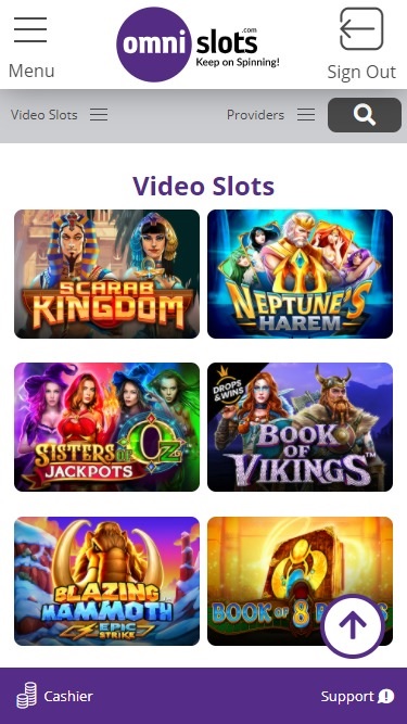 Omni Slots Casinoは Net Entertainment, BetSoft, 1x2gaming, Amatic Industries, iSoftBet, Oryx, Play'n GO, playson, Thunderkick, Wazdan, Booming Games, Stakelogic, Pragmatic Play, Spinomenal, Red Rake Gaming, Fugaso, Kalamba, Revolver Gaming, Spin Games, BGAMING, Fazi, Gluck Games, HungryBear Gaming, Blue Guru Games, Reevo, GamesOS, Leander Games, Gamomat, BF Games, Bally Wulff, Wild Streak Gaming, Golden Hero, RubyPlay, Gamevy, Japan Technicals Games, BB Games, Black Pudding Games, RAW iGaming, Spribe, Gaming Corps and Indigo Magicを採用しており、カジノのウェブベースプラットフォームからアクセスできる豊富なゲームライブラリを提供しています。また、スマートフォンやタブレットでプレイできるモバイルベッティングサイトも提供しています。