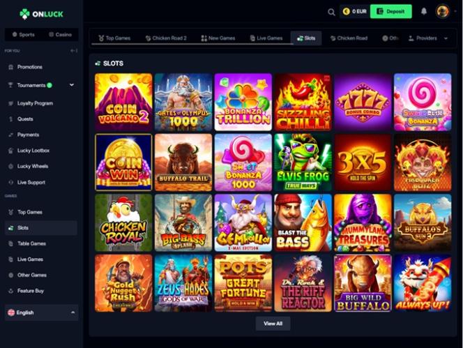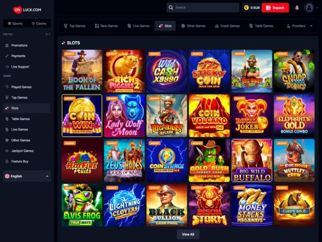 Onluck のスロット セクションでは、魅力的なテーマ、エキサイティングなメカニズム、あらゆるリール設定など、文字通り何千ものゲームから選択でき、新しいタイトルも定期的に追加されています。