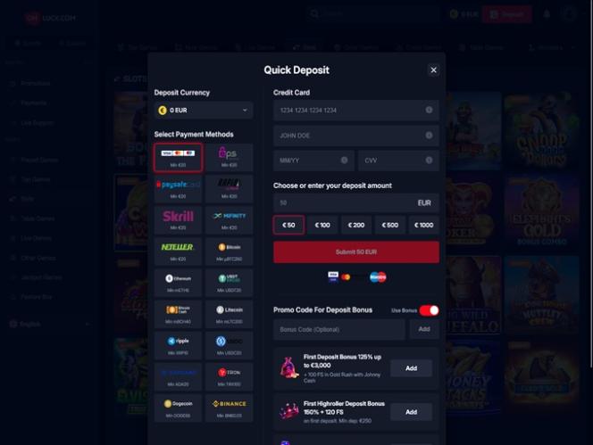 Onluck Casinoは、前述の通り、多くの人気仮想通貨に対応した仮想通貨カジノです。既に仮想通貨に切り替えたオンラインカジノプレイヤーなら、きっとこのカジノを楽しめるでしょう。また、従来の銀行決済を好むプレイヤーも、決済カード、銀行振込、その他のオンライン決済システムを利用してアカウントに資金を入金できます。