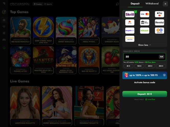 Scratch Match、King of Jumping Scratch、Ice Scratch Bronze、Piggy Bank Scratch、Shave the Beard などのスクラッチ カード ゲームは、Oscarspin Casino のプレイヤーに人気の高いゲームの一部です。