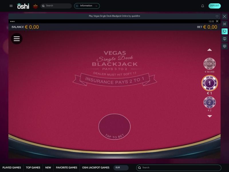 Oshi Casino Blackjack (Net Entertainment)拡大