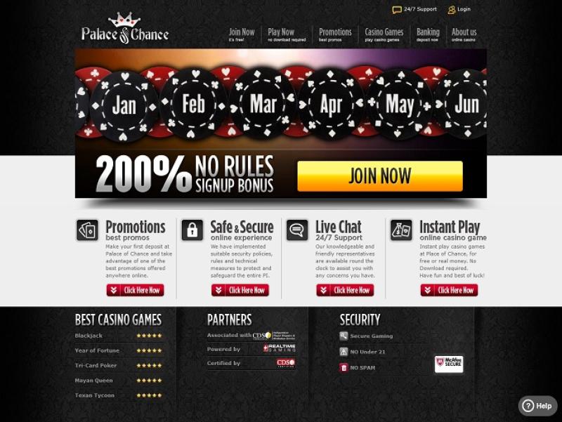 Palace of Chanceは、Virtual Casino Groupが所有・運営するオンラインカジノです。数年前から運営を続けており、プレイヤーへの支払いに非常にケチなカジノとして評判を得ています。この評判はカジノ側にとっても当然のものであり、運営側は不正行為者やボーナス乱用者につけ込まれ、プレイヤーに対して多くの制限を課してきました。そのため、些細で分かりにくいルールに違反したプレイヤーは、賞金の没収や支払い拒否の対象となります。そのため、Palace of Chance Casinoでプレイする際は、細心の注意を払うようお願いいたします。カジノ情報