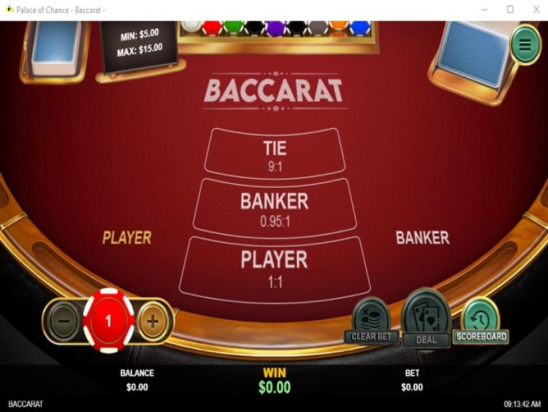 Palace of Chance Casino は Real Time Gaming and Spinlogic Gamingによって運営されており、Web ベースのプラットフォームと、カジノのゲームにアクセスするためにプレイヤーが使用できるダウンロード可能なソフトウェアを提供しています。Baccarat