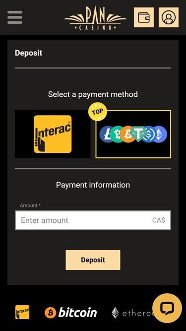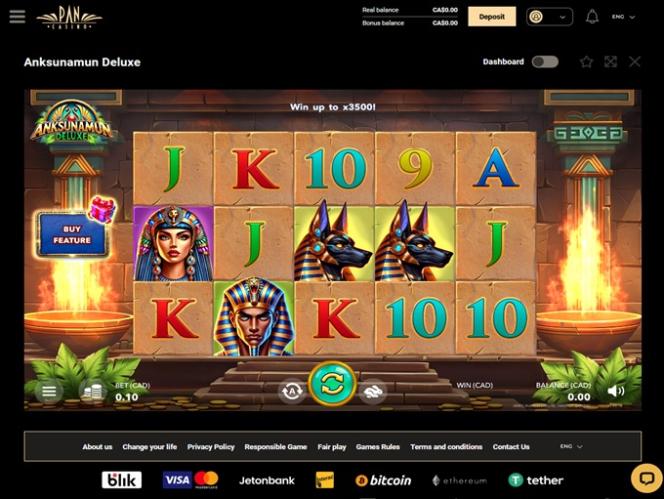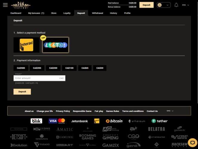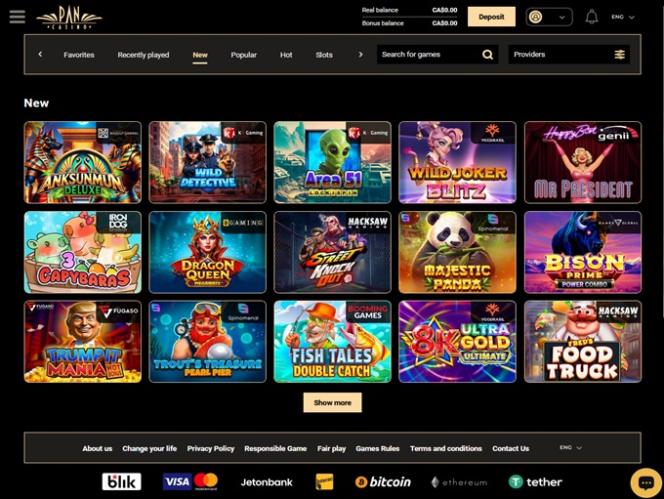 Pan Casino は、Cardano、Bitcoin Cash、Bitcoin、カナダドル、Ethereum、Litecoin、ポーランドズウォティ、Solana、Toncoin、TRON、USD Coin、Tether、XRPなど、多数の法定通貨とデジタル通貨をサポートしています。