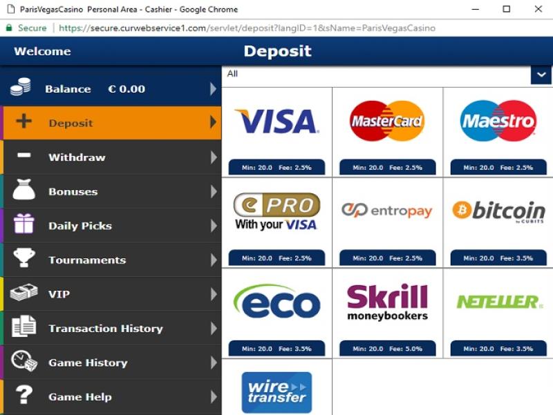 Paris Vegas Casinoは NextGen and Skill on Netによって運営されており、ゲームはダウンロード可能なソフトウェアと、ウェブブラウザからプレイできるインスタントプレイプラットフォームを通じて提供されます。モバイルプレイヤーは、スマートフォンやタブレットからもカジノにアクセスできます。での銀行オプション Paris Vegas Casino