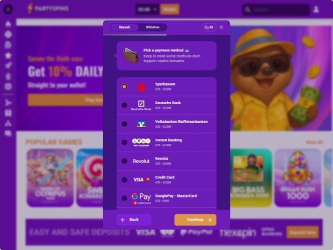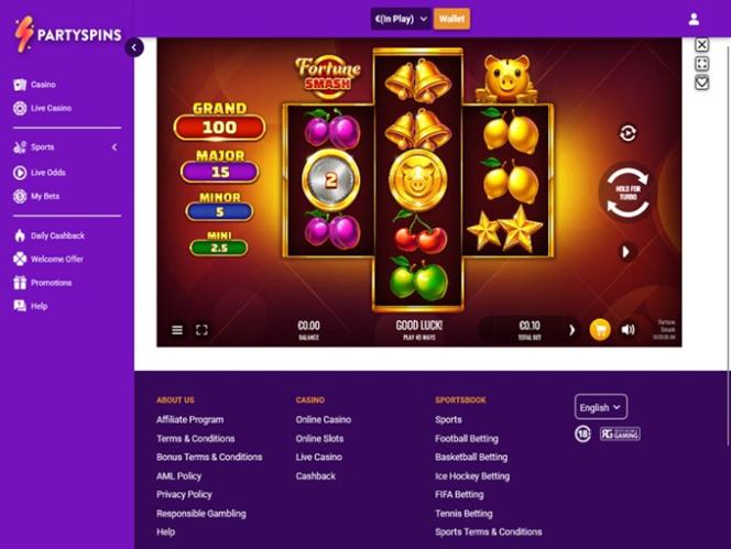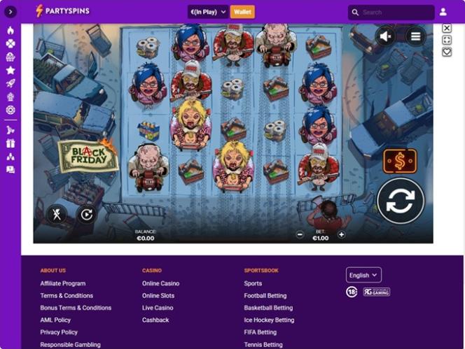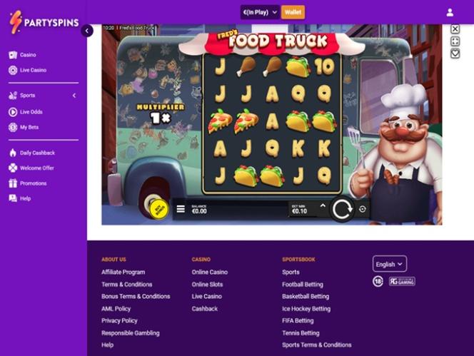 PartySpinsは、主にドイツとカナダのプレイヤーを対象としたオンラインカジノです。コモロ連合のアンジュアン自治島政府によってライセンスと規制を受けています。このウェブサイトでは、オンラインカジノゲームに加え、スポーツブックのオプションも提供しています。