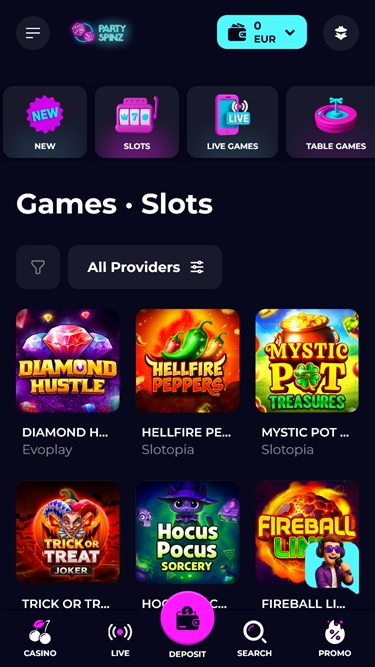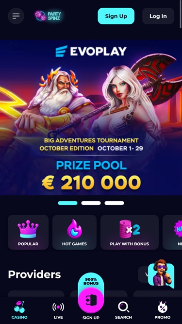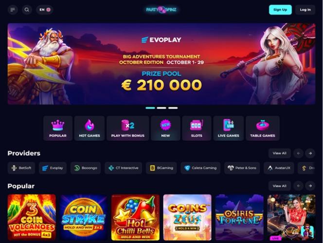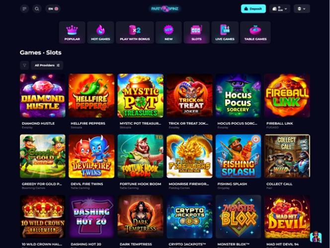PartySpinzは、リアルマネースロット、ライブディーラー、テーブルゲーム、クラッシュゲームなど、幅広いカジノゲームを取り揃え、自宅にいながらラスベガスのようなギャンブル体験を楽しめるモダンなオンラインカジノです。ボーナス、プロモーション、イベント、ネットワークトーナメントにも力を入れています。