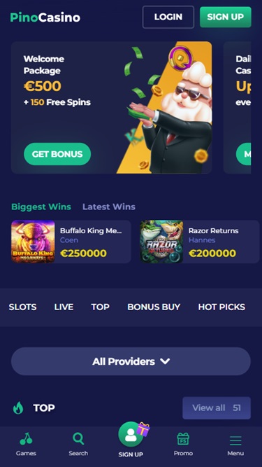 Pino Casinoは、マルタに拠点を置くN1 Interactive Ltdが運営するオンラインカジノです。同社はマルタゲーミングオーソリティ(MGA/B2C/394/2017)の認可・規制を受けています。初めてPino Casinoを訪れるプレイヤーの皆様も、きっと目を楽しませるブルーを基調としたデザインと、ページに掲載されている様々な特典を気に入っていただけることでしょう。さらに、このカジノは充実したゲームライブラリと、新規プレイヤーと常連プレイヤーの両方を満足させる豊富な特典を誇り、さらに常連プレイヤー向けの特別な特典もご用意しています。これらの特典については、後ほど詳しくお伝えしますので、どうぞお楽しみに!カジノ情報