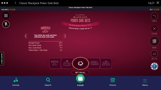 Classic blackjack | ハンド | いいえ | 9から11 | 1 | いいえ | はい | いいえ | いいえ | 99.60% | 5 | いいえ |