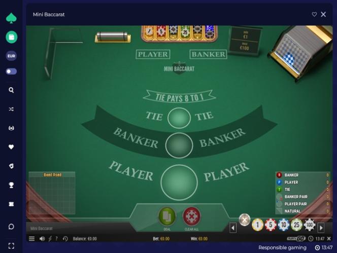 - 5% のために ポーカー, ルーレット, アメリカンルーレット, シックボー, バカラ, クラップス, ブラックジャックそしてクラシックブラックジャック