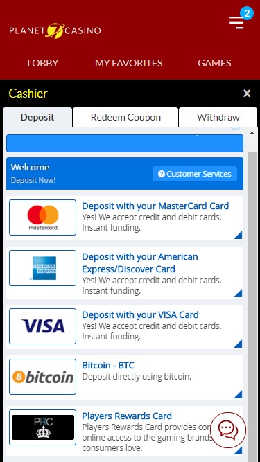 Planet 7 カジノでは、カジノで賭けた 10 ドルごとに 1 ポイントのコンプ ポイントが提供され、プレイヤーはカジノで 100 ポイントを 1 ドルの現金と交換できます。
