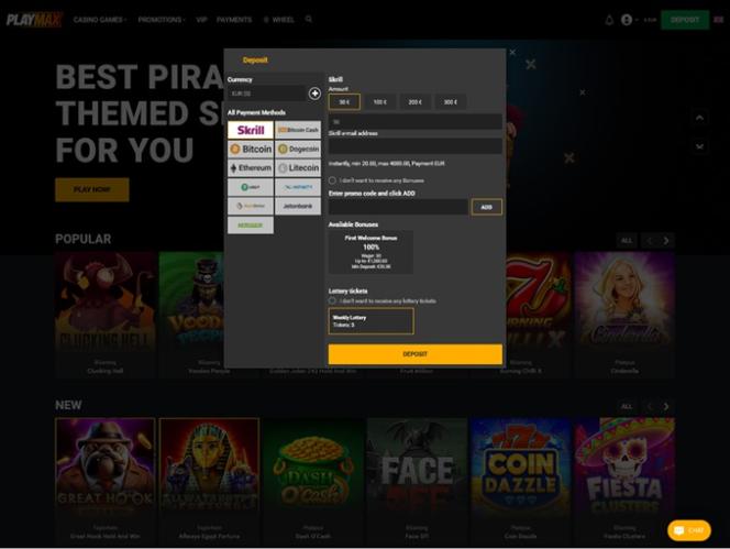 Playmaxは、入金と出金に利用できる決済方法も豊富です。Visa、Mastercard、SkrillやNetellerなどのeWallet、そしてもちろん仮想通貨も提供されているので、きっとあなたの好みに合ったものが見つかるはずです。
