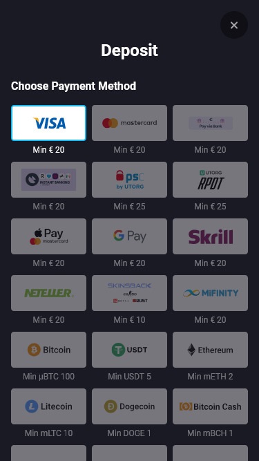 オンラインカジノがプレイヤーにウェブサイトへのアクセスを提供してくれるのは、私たちにとって大変ありがたいことです。PlayMojoは、 Visa 、 Mastercard 、 Neteller 、 Skrill 、 Neosurf 、 Paysafecard 、銀行振込など、多様な決済方法を利用できるようにすることで、その実現に貢献しています。また、このウェブサイトでは、ビットコイン、ビットコインキャッシュ、カルダノ、ドージコイン、イーサリアム、テザー、リップル、ライトコイン、トロンといった暗号通貨が利用可能であることも特筆すべき点です。