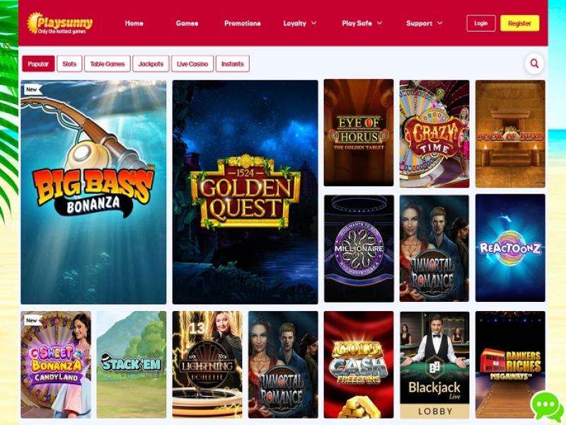 PlaySunny UK Casinoは Microgaming, Net Entertainment, 1x2gaming, Barcrest, Big Time Gaming, ELK Studios, Evolution Gaming, EYECON, Play'n GO, Rabcat, Relax Gaming, Yggdrasil, Realistic Games, Booming Games, Stakelogic, Pragmatic Play, Red Tiger Gaming, Spinomenal, Skillzzgaming, Fantasma Games, Triple Edge Studios, Northern Lights Gaming, Stormcraft Studios, Bulletproof Games, All41 Studios, Gluck Games, Gameburger Studios, Pulse 8 Studios, Neon Valley Studios, Golden Rock Studios, SpinPlay Games, Buck Stakes Entertainment, Design Works Gaming, Games Global, Bally Technologies, Blueprint Gaming, WMS, Inspired Gaming, Gaming Realms, SG Interactive, Red7Mobile, Scientific Games, Reel Time Gaming, Authentic Gaming, Iron Dog Studio, Foxium, Betdigital, Just For The Win, Reflex Gaming, PearFiction Studios, Wild Streak Gaming, Slingshot Studios, Fortune Factory Studios, 4ThePlayer, AvatarUX, Gamevy, Crazy Tooth Studio, ReelPlay, Alchemy Gaming, Boomerang Studios, Hacksaw Gaming, Gold Coin Studios, Bang Bang Games, Peter And Sons, Eurostar Studios, Lucksome Gaming, Area Vegas, HammerTime Games, Nailed It! Games, Live 5, Neko Games, Reel Kingdom, Oros Gaming and Light & Wonderを採用しており、サイトのゲームはダウンロード型ソフトウェアではなく、インターネットブラウザから起動するウェブベースのインスタントプレイプラットフォームを通じて提供されます。カジノはモバイルプレイに対応しており、スマートフォンやタブレットから賭けることができます。
