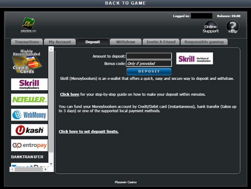 での銀行オプション PlazaWin Casino
